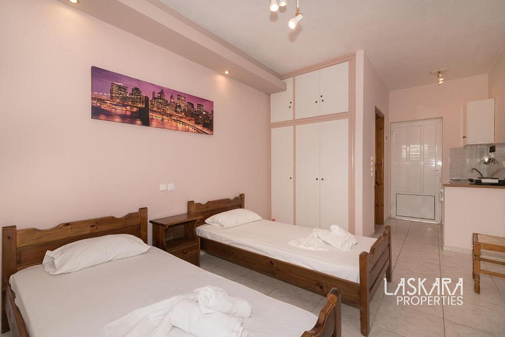 Aparthotel (ID: AB136) se nachází v klidné části letoviska Alikanas.
