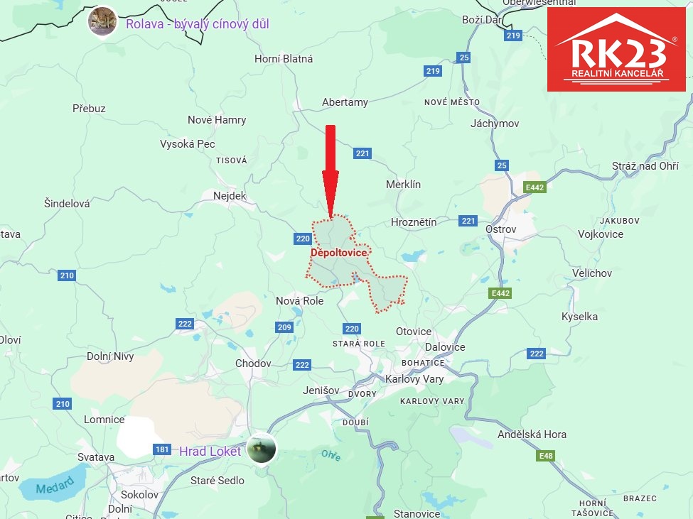 Tato oblast je velmi turisticky zajímavá a vyhledávaná. V obci je obecní úřad, dětské hřiště, restaurace, kostel, cyklostezky, lesy a louky. Poblíž se nachází Děpoltovický rybník. Je to přírodní jezero s písečnou pláží. Výhodou je dobrá dostupnost do ski areálu Plešivec nebo Pernink. Obec Děpoltovice leží zhruba 8 km severozápadně od Karlových Varů. Město Karlovy Vary je v dojezdové vzdálenosti cca 10 minut jízdy autem a nabízí veškerou občanskou vybavenost. Je to místo pro kvalitní bydlení v přírodě s rychlou dostupností do města. Při rychlém jednání je možnost slevy.