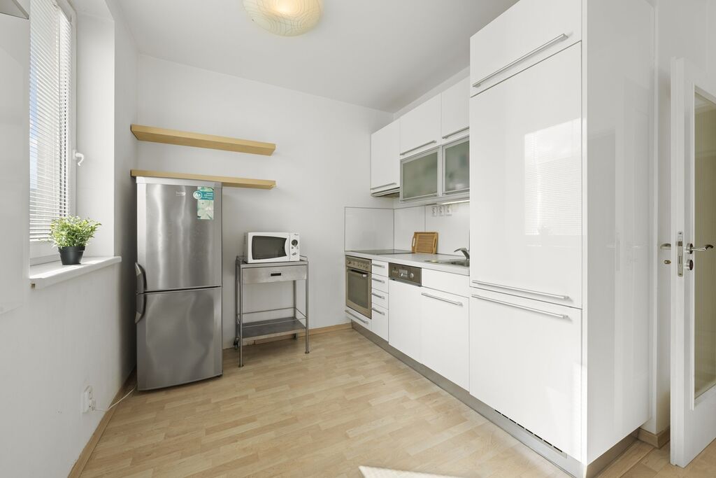 Exkluzivně nabízíme k prodeji velmi hezký, světlý a chytře dispozičně řešený byt 1+kk s balkonem a sklepem, o celkové užitné ploše 39,46 m². Byt je orientován na jih, nachází se ve 4. NP cihlového bezbariérového domu s výtahem v klidné části Prahy 10 – Strašnice a přitom kousek od centra.