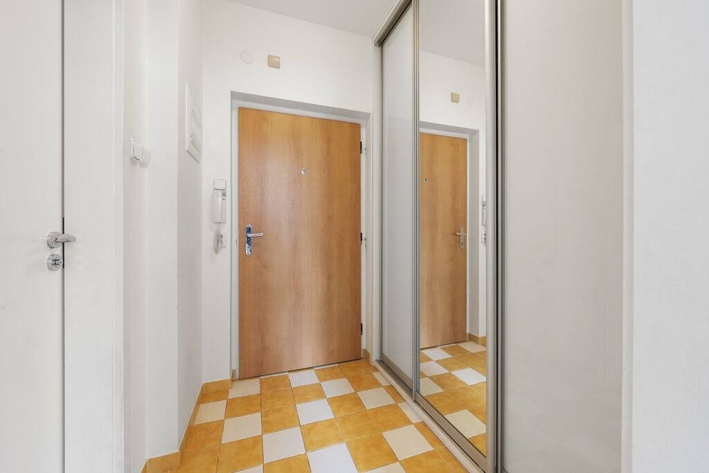 Byt vás hned při vstupu uvítá prostornou předsíní (3,82 m²), kde je umístěna velká vestavná skříň – ideální úložný prostor pro oblečení, obuv i domácí potřeby.