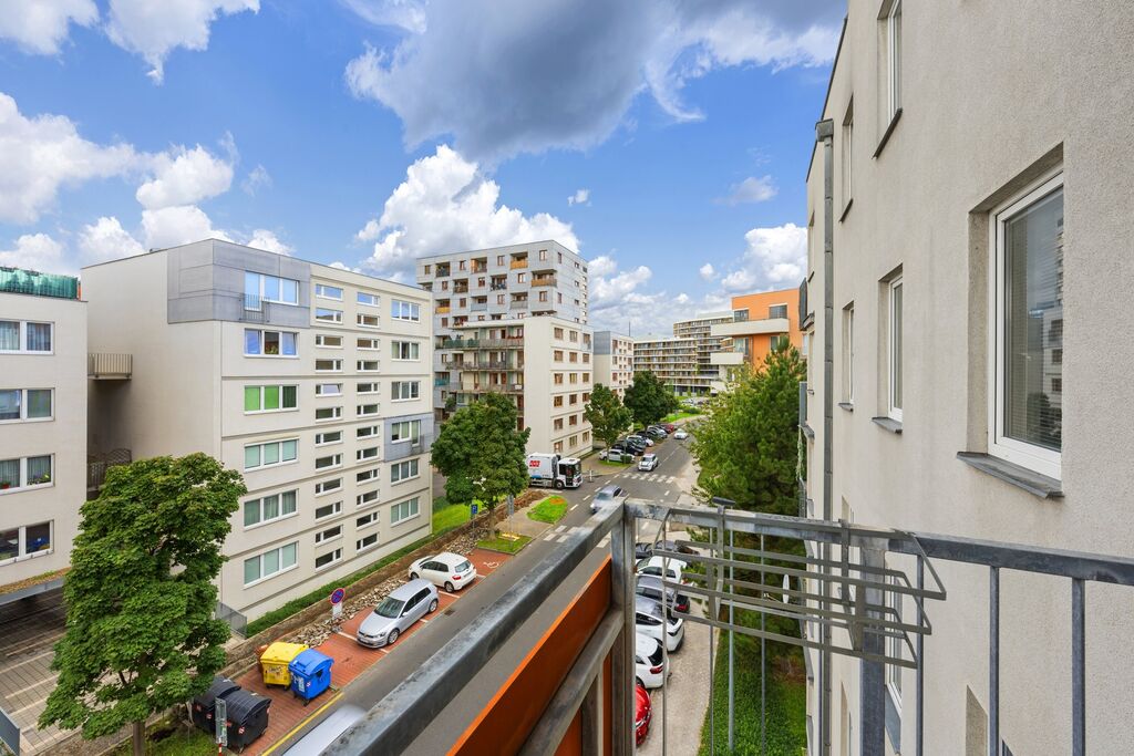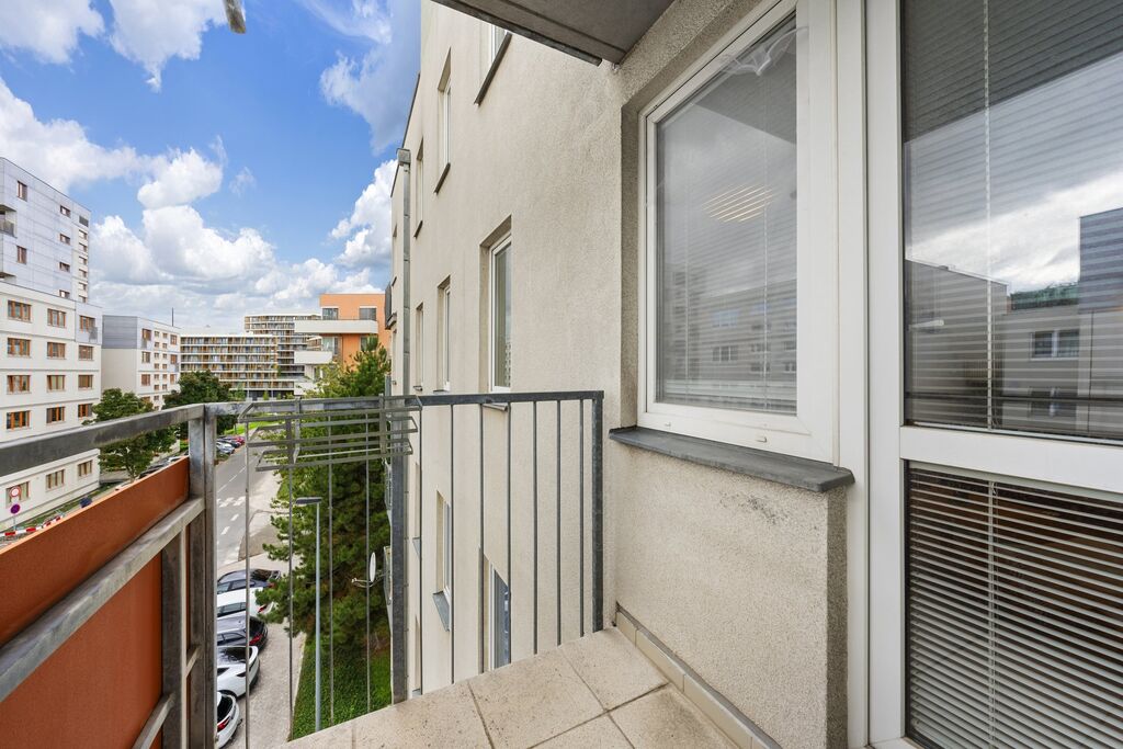 Z obývacího pokoje je přímý vstup na balkon (3,29 m²), který je orientovaný na jih a nabízí příjemné posezení u kávy nebo možnost pěstování bylinek.