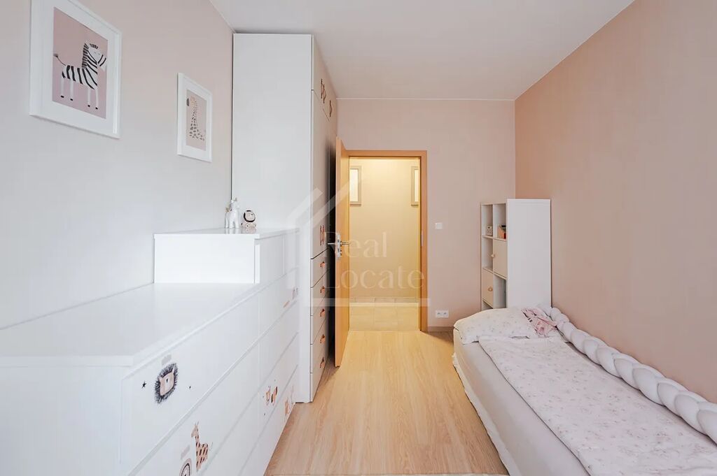 Vstupní chodba, obývací pokoj s kuchyňským koutem a vstupem na balkon, ložnice, dětský pokoj/pracovna, koupelna s vanou, dvě toalety, komora.