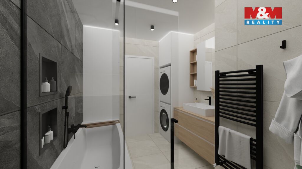 Byt s balkónem je situován v 2. NP moderního nízkoenergetického domu, ke kterému mu náleží 1 parkovací stání a sklepní kóje. K dispozici je prostorný obývací pokoj s kuchyňským koutem, dva samostatné pokoje, koupelna s vanou, samostatné WC a předsíň.
