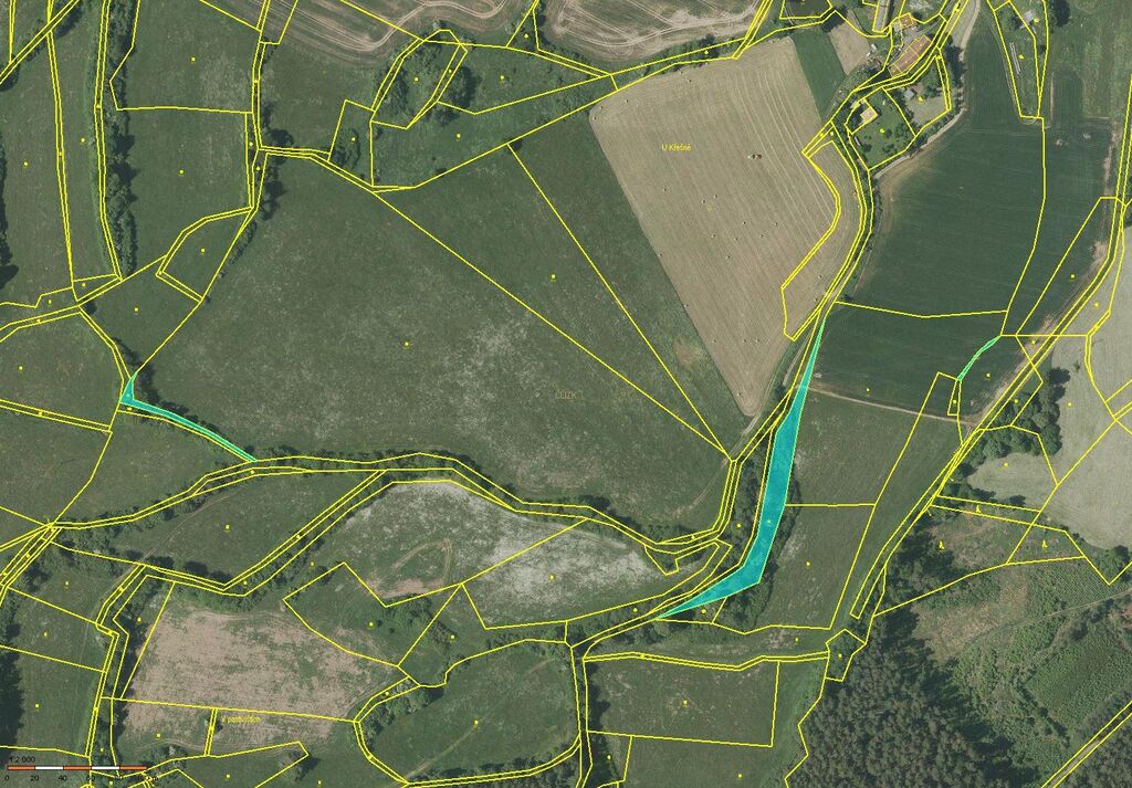 Pozemky se skládají ze tří parcel vedených jako trvalý travní porost o výměře 2911 m2 a jedné orné půdy o výměře 70 m2. Po dohodě s vlastníkem je možný samostatný prodej jednotlivých parcel.