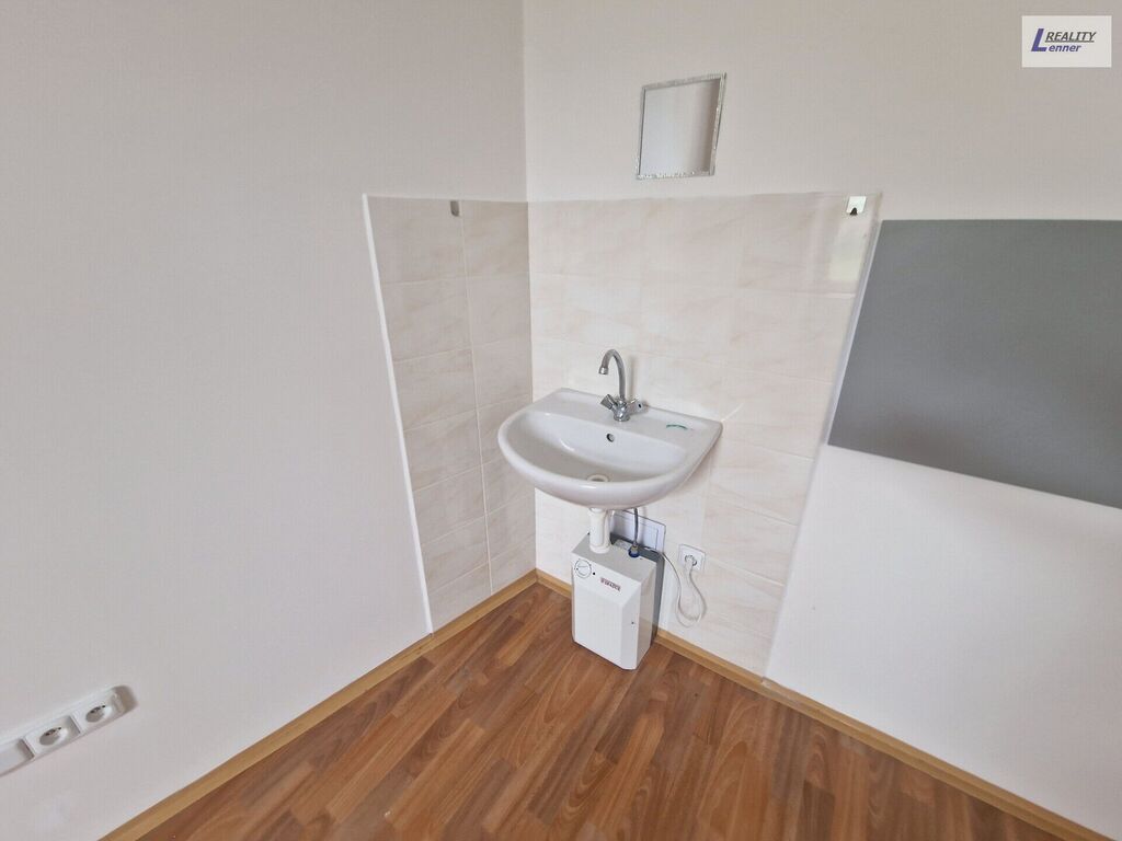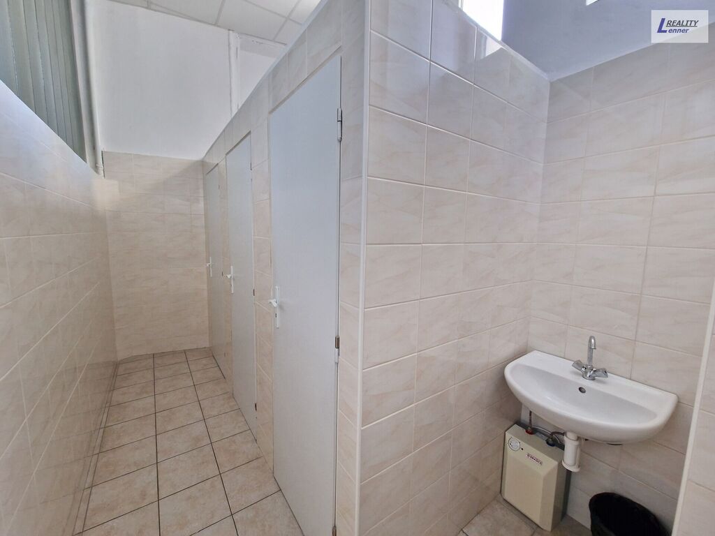Na patře k dispozici toalety. Kancelář má: plastová, nové příčky, štuky, malby, elektřina, rozvody vody a odpadů, příčky, radiátory, malby, podlahy.