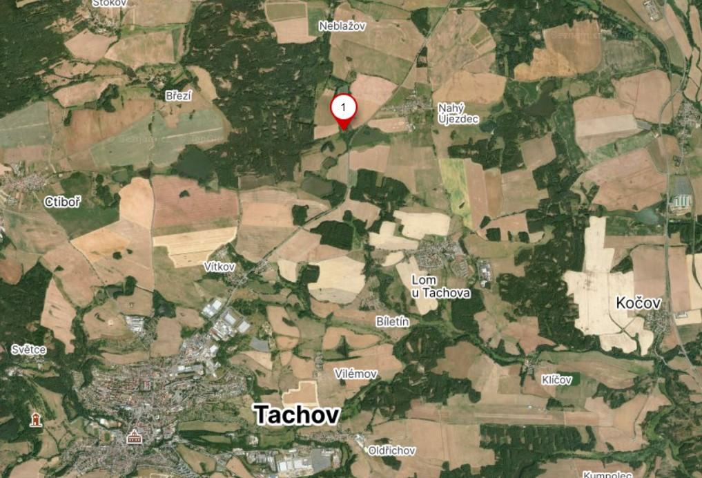 Pozemek se nachází v tiché venkovské krajině u obce Nahý Újezd, cca 5 km od města Tachov. Lokalita nabízí klidné prostředí, polní cesty a možnost přímého využití nebo investiční příležitost.