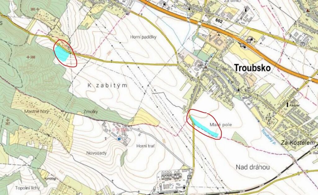 Prodám pozemky v k.ú. Troubsko