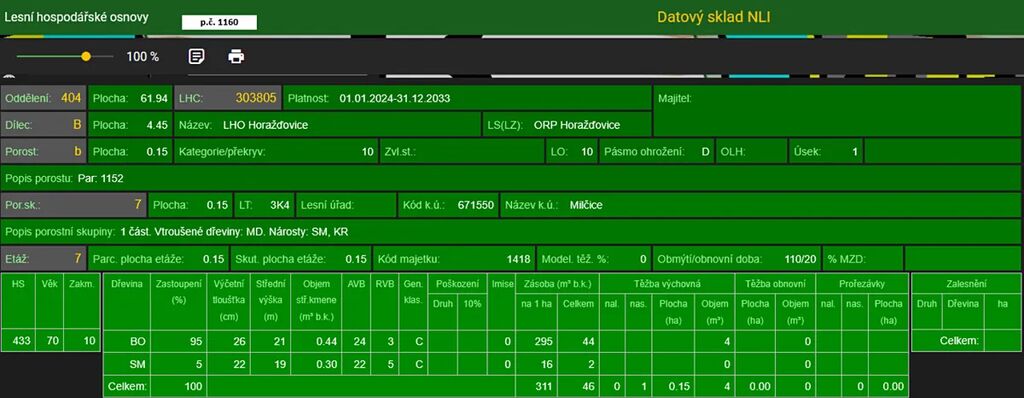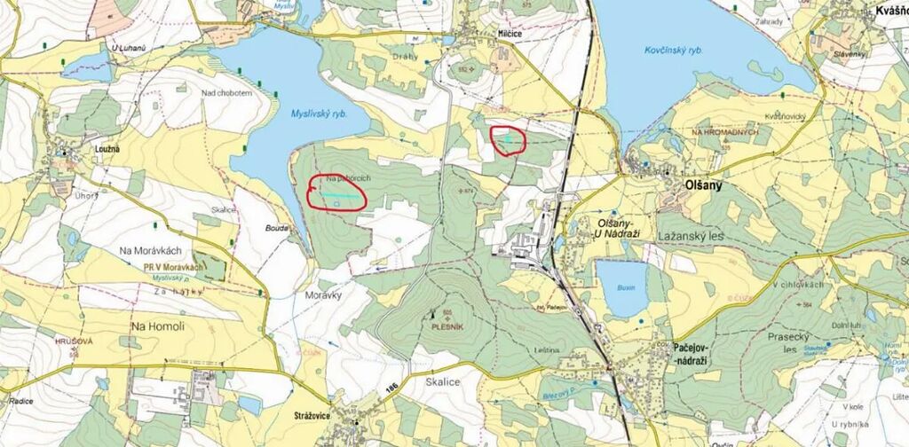 Jedná se o p.č. 870 vedená jako lesní pozemek o celkové výměře 3 341 m2 a p.č. 1160 vedená jako lesní pozemek o celkové výměře 1 215 m2.