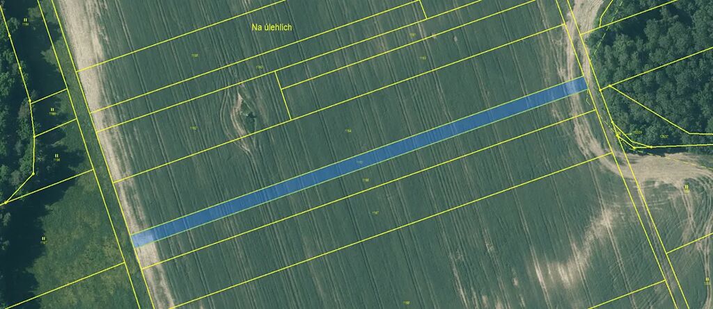 Jedná se o p.č. 1182 vedená jako orná půda o celkové výměře 13 938 m2, pozemek navazuje na komunikaci a nachází v místní oblasti Hvízdalka, navazuje na zastavěné území. Jsme 100% vlastníci.
