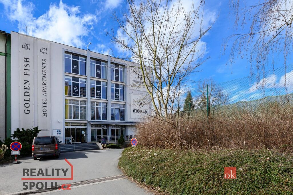 Byt je součástí apartmánového domu Golden Fish, postaveném v roce 2009. V přízemí se nachází recepce a restaurace s posezením na zahrádce, součástí objektu je i wellness. Je umístěný v klidné lokalitě Plzeň Bory, hned vedle Borského parku. V blízkosti MHD a kompletní občanská vybavenost. Výborná je i dostupnost centra Plzně, případně dálnice D5.