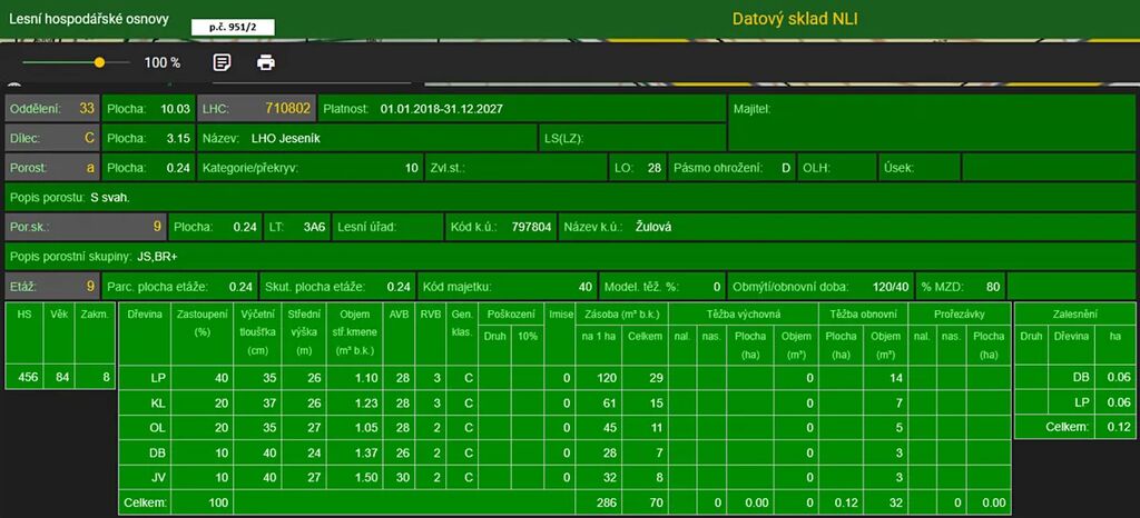 Dále p.č. 951/2 vedená jako lesní pozemek o celkové výměře 2 366 m2, vlastníme podíl 3/4 tudíž výměru 1 775 m2.