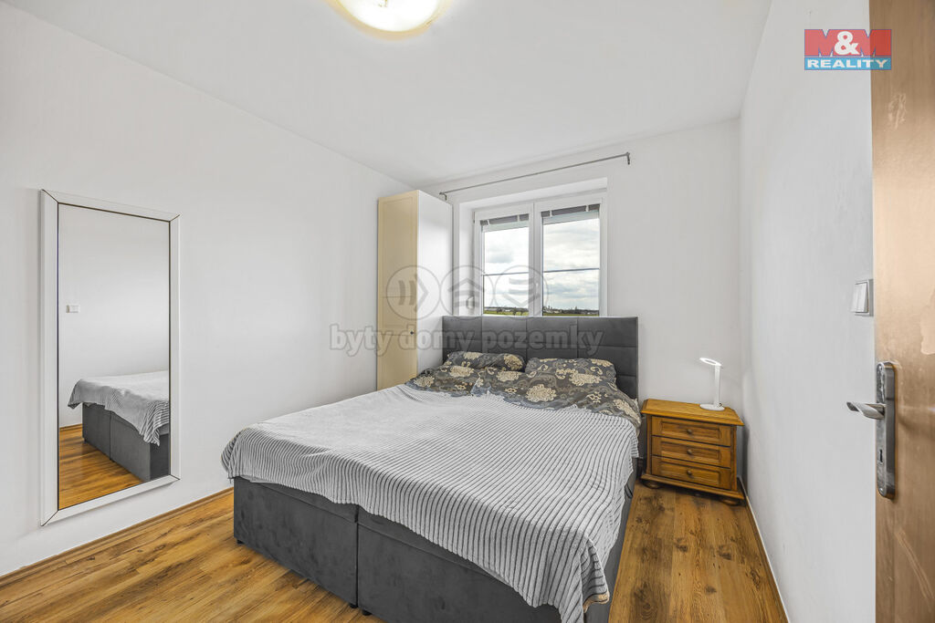 Disponuje obývacím pokojem s kuchyňským koutem, ložnicí, koupelnou s vanou, WC, předsíní a prostorným balkónem. V bytě jsou plastová okna se žaluziemi, šatní skříně, na podlahách vinylová podlaha a dlažba. Vytápění a ohřev teplé vody zajišťuje plynový kotel. V domě je společný skladovací prostor. K bytu náleží vyhrazené venkovní parkovací stání před domem. V blízkém okolí nemovitosti se nachází základní a mateřská škola a autobusová zastávka. V dochozí vzdálenosti Billa, Akva Zoo, trafika, Pepco, drogerie Teta. Velkou výhodou je okolní zeleň.