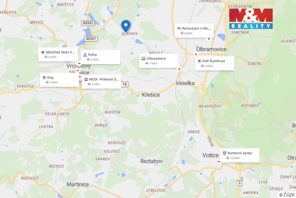 Nabízíme k prodeji stavební pozemek o výměře 951 m² v malebné obci Slavkov u Olbramovic, katastrální území Křešice u Olbramovic.