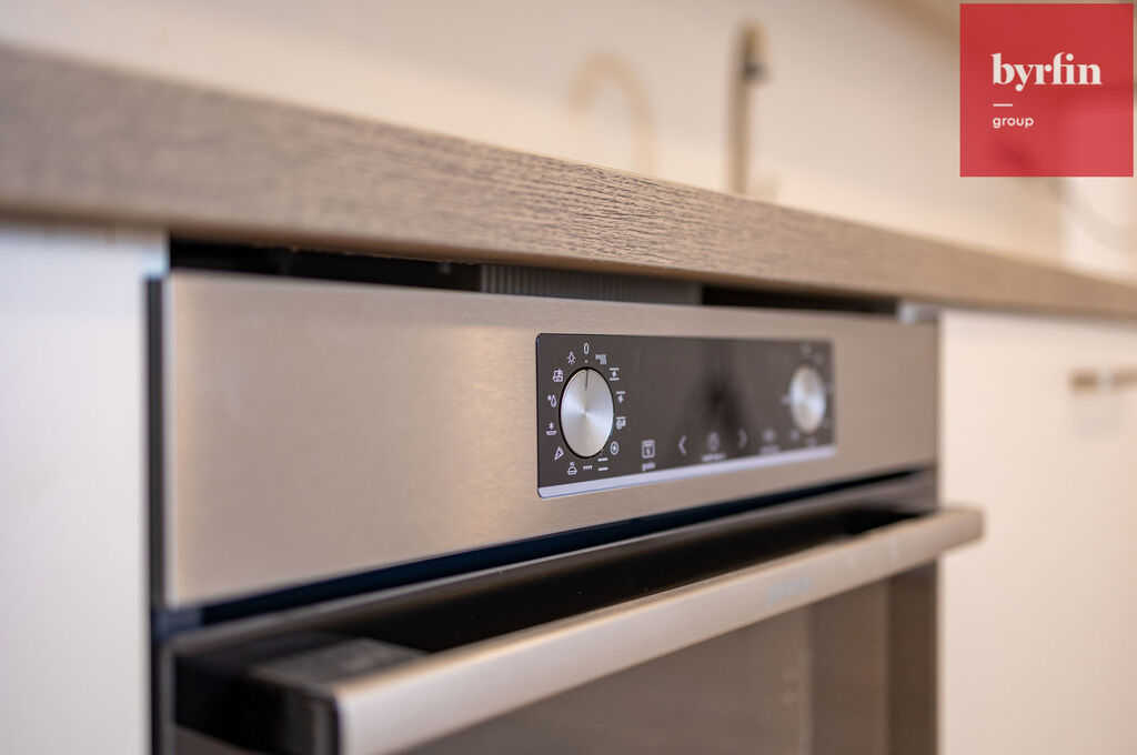 Bytová jednotka sestává ze vstupní předsíně, obývacího pokoje s kuchyňským koutem, ložnicí a koupelnou s WC. V rámci rekonstrukce zde byla položena laminátová podlaha s dekorem dřeva, která barevně koresponduje s kuchyňskou linkou řešenou na míru. Kuchyňská linka disponuje vestavnou horkovzdušnou troubou , sklokeramickou deskou, digestoří a granitovým dřezem s pákovou baterií. Pracovní plocha je osvětlena LED páskem. Obývací pokoj je dobře prosvětlený denním světlem a také zapuštěnými LED světly, které jsou instalovány v celém bytě a mají minimální spotřebu elektrické energie. Ložnice nabídne dostatek prostoru pro manželskou postel, pracovní stůl a šatní skříně. Koupelna s WC, do které se vchází z ložnice je vybavena rohovým sprchovým koutem, toaletní skříňkou. Pračku je možno připojit do kuchyňské linky.