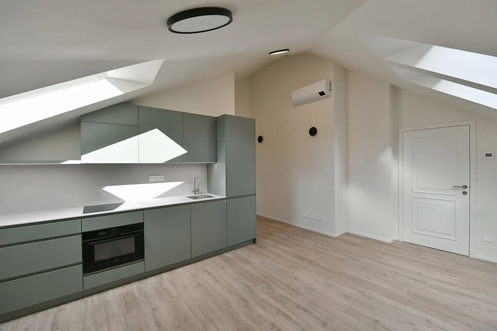 K dlouhodobému pronájmu nabízíme vzdušný ateliérový byt o velikosti 2+kk ve druhém podlaží butikového rezidenčního projektu Boleslavova 3 s výhledy na park Fidlovačka i celé Nuselské údolí.