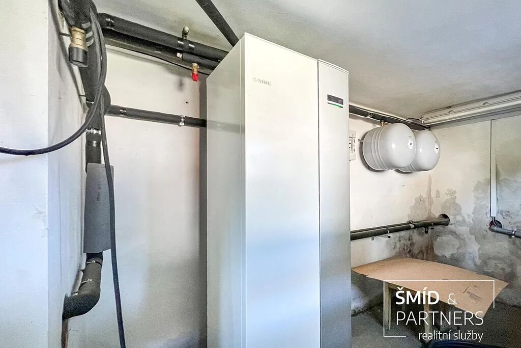 Vytápění je zajištěno tepelným čerpadlem a voda je čerpána ze studny. Městský vodovod a kanalizace se nachází v blízkosti hranice pozemku.