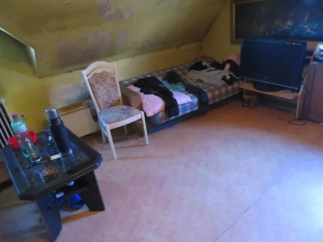 V přízemí domu se nachází obytný prostor o dispozici 1+1. Přízemí je rozděleno na kuchyň (20,62 m2), chodbu (10,22 m2), koupelnu (7,03 m2), WC (0,74 m2), sklad (5,88 m2), kotelnu (4,81 m2), kolnu (21,12 m2), komoru (0,88 m2), pokoj (10,96 m2) a schodiště (2,93 m2). Koupelna je vybavena vanou. V podkroví je disposice 2+0. Patro je rozděleno na chodbu (2,48 m2), pokoj (24,54 m2) a pokoj (13,65 m2).