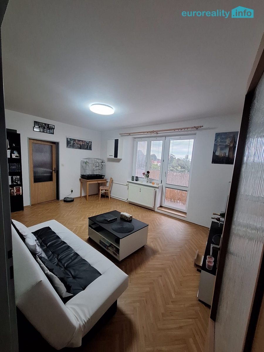 Dispozičně je byt řešen velmi prakticky - prostorný obývací pokoj je propojený s částečně vybaveným kuchyňským koutem, samostatná ložnice nabízí dostatek prostoru pro chvíle klidu. Z předsíně se přemístíme do koupelny, která je vybavená vanou a náleží k ní samostatná toaleta. S výhledem do města nám pomůže balkón, který je situován na východní straně bytu.