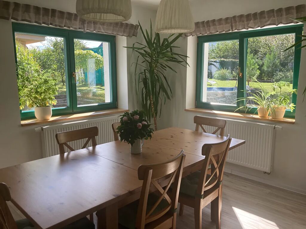 Srdcem rodinného domu je v přízemí situovaná prostorná kuchyně s jídelnou, která je vybavená dokonalou kuchyňkou linkou (plynová varná deska, horkovzdušná trouba, vestavná lednice, vestavná myčka, digestoř) a na ni přes halu pokračující hlavní obytný prostor s výhledy do zahrady a s krbovými kamny. Na tyto prostory navazuje zádveří a chodba, ze které je vstup do samostatné toalety, do koupelny s vanou a do technické místnosti. Z kuchyně je vchod na schodiště vedoucí do chladného sklípku. Z přízemí vede schodiště do obytného podkroví, ve kterém se nachází další 3 pokoje, z nichž jeden má přímo z pokoje přístupnou šatnu a jiný z pokoje půdním výlezem přístupnou zateplenou a okny prosvětlenou půdu.
