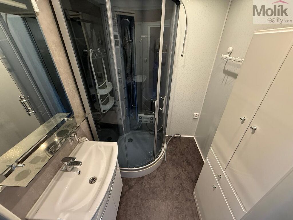 Bytová jednotka prošla menšími úpravami - novější kuchyňská linka, koupelna je oddělena od toalety (sprchový kout), v kuchyni, v obývacím pokoji a v chodbě je položena plovoucí podlaha.