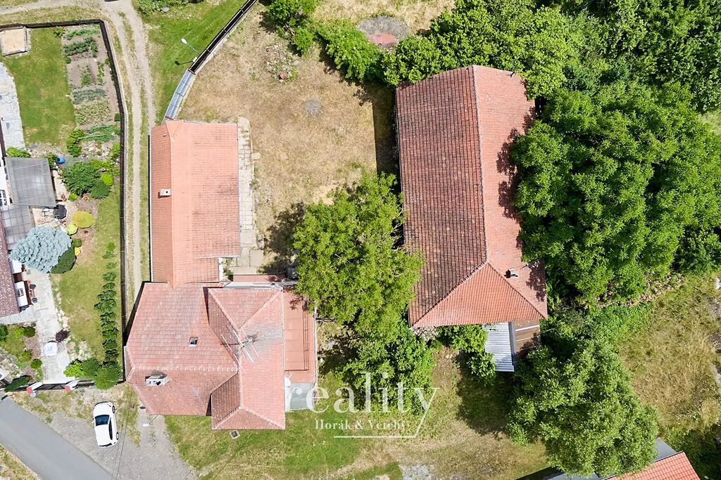 Rodinný dům - jde o dvoupodlažní podsklepený RD z roku 1977 o výměře 209m2, který tvoří hlavní dominantní část. V 1.NP je bytová jednotka o dispozici 3+1, v 2.NP jsou samostatné 2 pokoje + navazující půdní prostor v rámci jednoho podlaží a balkón. Konstrukce jsou smíšené, obvodové zdivo je z plných cihel, stropní konstrukce hurdiskové, v podkroví dřevěné trámové, okna izolační dvojskla. Součástí sklepu je garáž + technické místnosti. Exteriér a konstrukce nemovitosti jsou zachovalé, interiér odpovídá svému stáří, ale nabízí velkorysé bydlení. V přiložené fotogalerii máte možnost se podívat na možné vizualizace budoucího stavu.