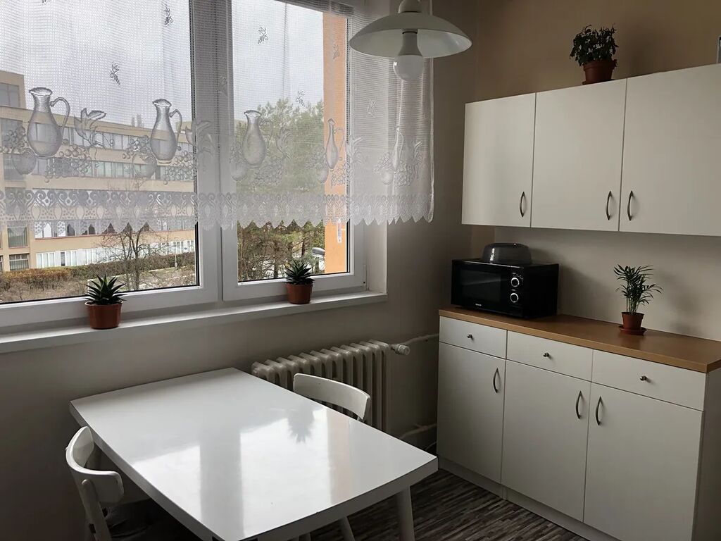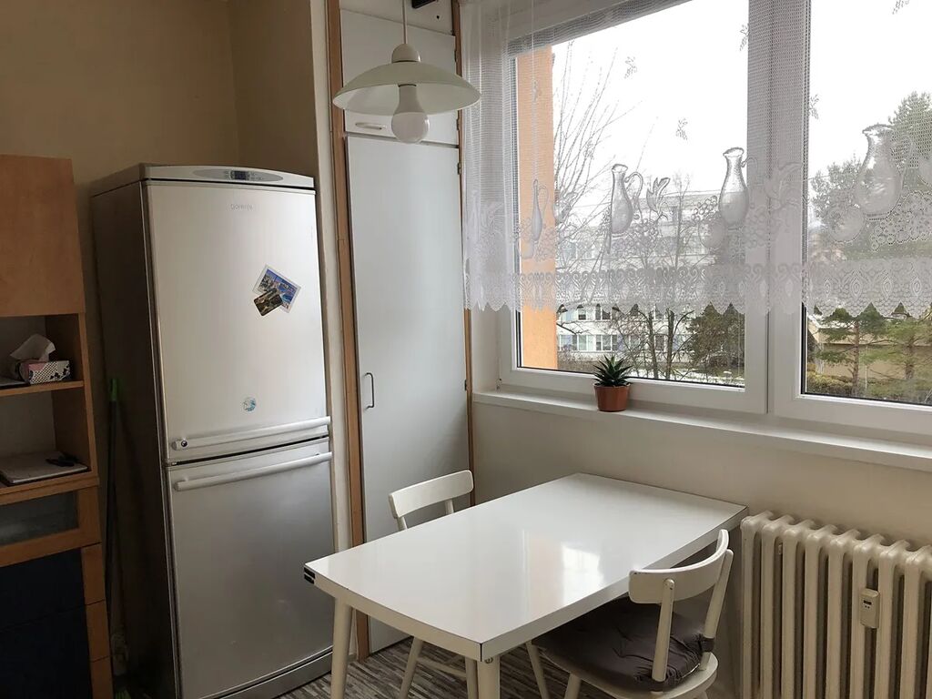 Prodej udržovaného slunného bytu v osobním vlastnictví o velikosti 1+1 s prostornou zasklenou lodžií a sklepem. Byt je situován ve 3.NP/8.NP revitalizovaného panelového domu s novou fasádou, zateplením, plastovými okny a novým výtahem. Velkou finanční výhodou domu je pronájem společných částí domu - střechy, k umístění antén několika společností. Výnos je rozdělen mezi vlastníky nebo převeden do fondu oprav.