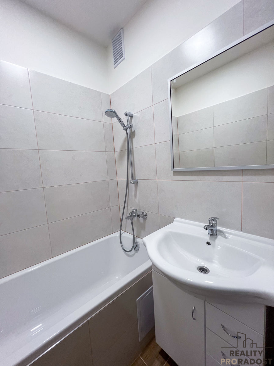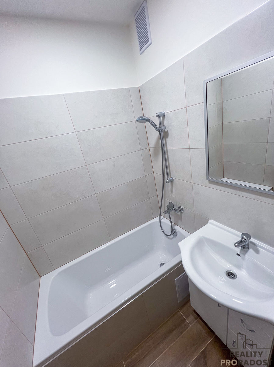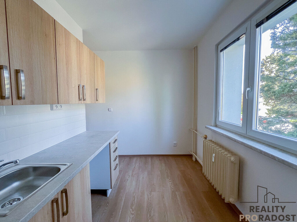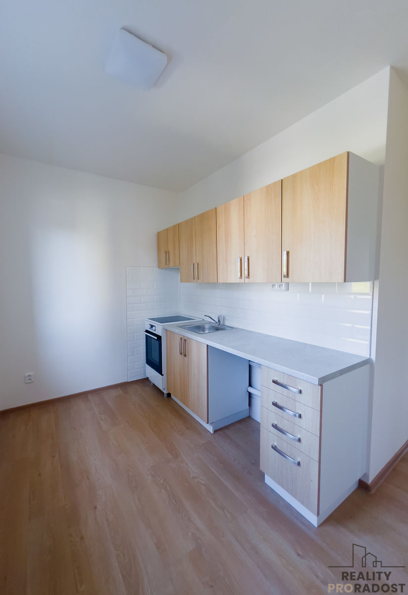 V kuchyni se nachází kuchyňská linka včetně elektrického sporáku a nerezového dřezu s baterií. V kuchyni je dostatek prostoru pro umístění jídelního stolu. V koupelně se nachází vana, umyvadlo, příprava na pračku. Na chodbu je možné umístít šatní skříň i botník.