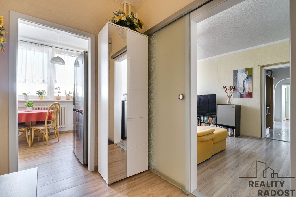 Technický stav bytu - byt procházel před cca 7-10 lety částečnou rekonstrukcí - nová elektřina v kuchyni a předsíni, nová kuchyňská linka včetně spotřebičů, laminátové podlahy, interiérové dveře včetně prosklených dveří mezi předsíní a obývacím pokojem, ... Nábytek není součástí prodeje.