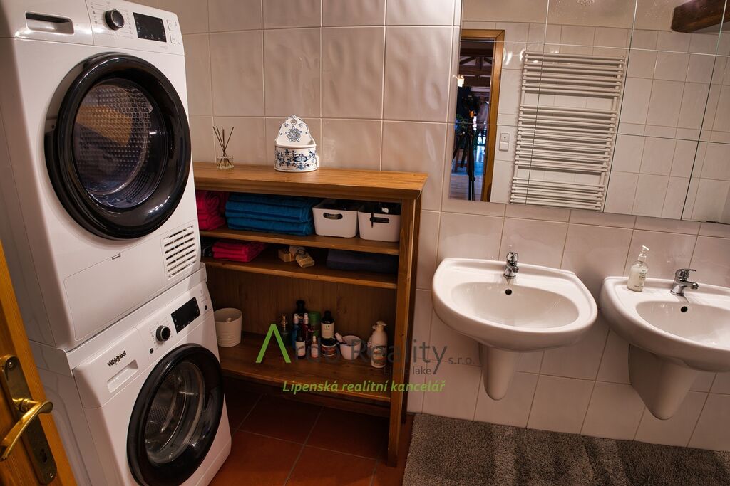 Pro ty, kteří hledají kombinaci životního stylu a finanční příležitosti, je tento rodinný dům ve Frymburku o rozloze 350 m² ideální volbou. Dům je situován na pozemku o celkové velikosti 277 m². Zastavěná plocha je 200 m². Dům byl kompletně renovován v roce 2003/4 a znovu částečně upraven v roce 2020. Dům je chytře rozdělen na dva plnohodnotné byty: v přízemí se nachází 2+kk o velikosti 90 m² a v patře prostorný 3+kk s úchvatnými výhledy. Toto uspořádání je perfektně vhodné jak pro dvě rodiny žijící nezávisle pod jednou střechou, tak pro ty, kteří chtějí obývat vlastní byt a zároveň generovat příjem pronájmem druhého. Nemovitost vyniká jak jako osobní útočiště, tak jako podnikatelská příležitost. Horní terasa (11 × 4 m) je skutečným středobodem – nabízí několik zón k posezení, rozkládací pohovku pro letní noci a dechberoucí výhled na Vítkův kámen a západy slunce nad Lipnem. Spodní terasa poskytuje ještě více možností: zastíněné posezení ideální pro horká odpoledne a slunný koutek s částečným výhledem na jezero. Uvnitř disponují prostorné kuchyně v obou bytech dostatkem místa pro rodinná jídla i společenská setkání. Velká okna zaplavují interiér světlem a rámují výhledy na jezero, kostel i malebné centrum Frymburku. Nová krbová kamna v obou apartmánech nabízejí v zasněžených zimních večerech útulnou atmosféru a posezení s hrnkem horké čokolády v ruce. Jinak je objekt vytápěn moderním a velmi úsporným zařízením na LTO s výměníkem, které pro byt v patře poskytuje také teplou vodu. Dům se prodává kompletně zařízený, s krytým parkováním pro 4 auta a je připravený k okamžitému nastěhování. Pouhých 100 metrů od břehu jezera a cyklostezky nabízí tato nemovitost jedinečnou příležitost spojit rodinné bydlení s možností pronájmu. Ať už se rozhodnete obývat oba byty jako vícegenerační rodina, využít jeden a druhý pronajímat, nebo oba sezónně nabízet rekreantům, tento univerzální dům je skutečně výjimečnou příležitostí...