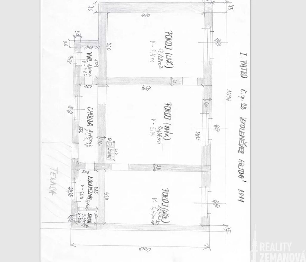 Patro: chodba, tři místnosti, koupelna s WC, komora/prádelna