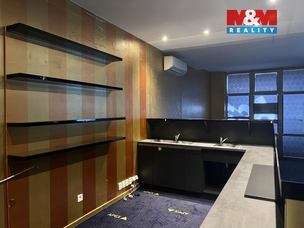 Dispozici tvoří jedna velká otevřená místnost a čtyři menší – z toho dvě místnosti slouží jako toalety, další dvě lze využít jako sklad, kancelář nebo zázemí pro zaměstnance. Prostor je vybaven klimatizací a je ve velmi dobrém technickém stavu – ihned k využívání bez nutnosti investic do oprav.
