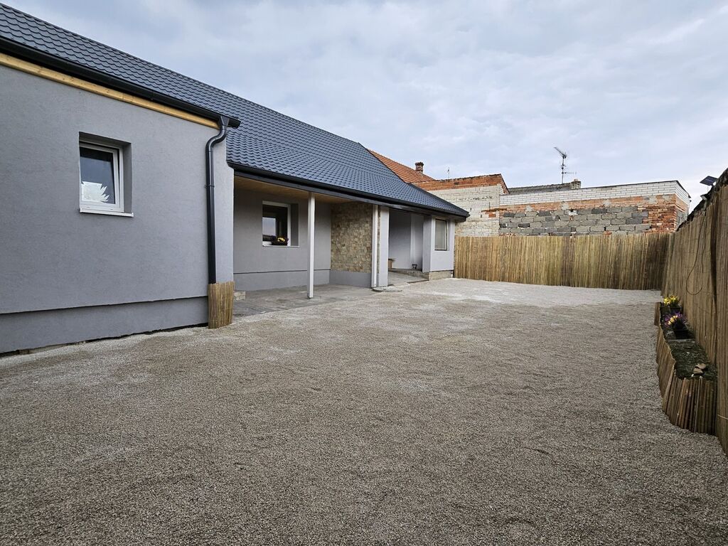 Součástí bytu je také uzavřený dvorek, který poskytuje soukromí i prostor pro odpočinek. Vytápění a ohřev vody je řešeno tepelným čerpadlem, což zajišťuje nízké provozní náklady.