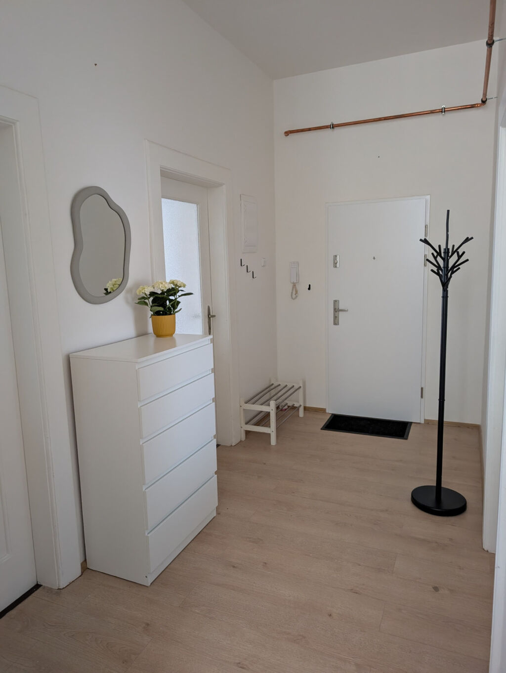 Dispozice bytu nabízí praktické a pohodlné řešení – prostorný obývací pokoj, samostatnou kuchyň se spíží, útulnou ložnici a moderní koupelnu. Díky vysokým stropům a velkým oknům jsou všechny místnosti světlé, vzdušné a působí velmi příjemně.