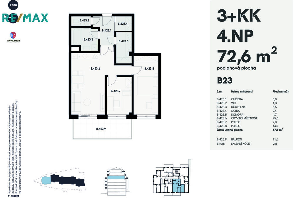 Prostorný byt 3+KK s balkónem v novém projektu BD Tuhnice