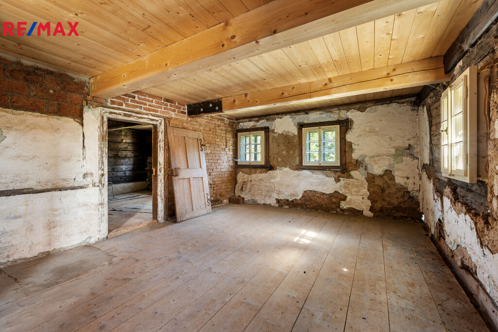 Roubenka (90 m²) – částečně zrekonstruovaná, se třemi místnostmi, předsíní s komorou a možností vybudování obytného podkroví. Skvělý prostor pro dětské pokoje či útulnou pracovnu.