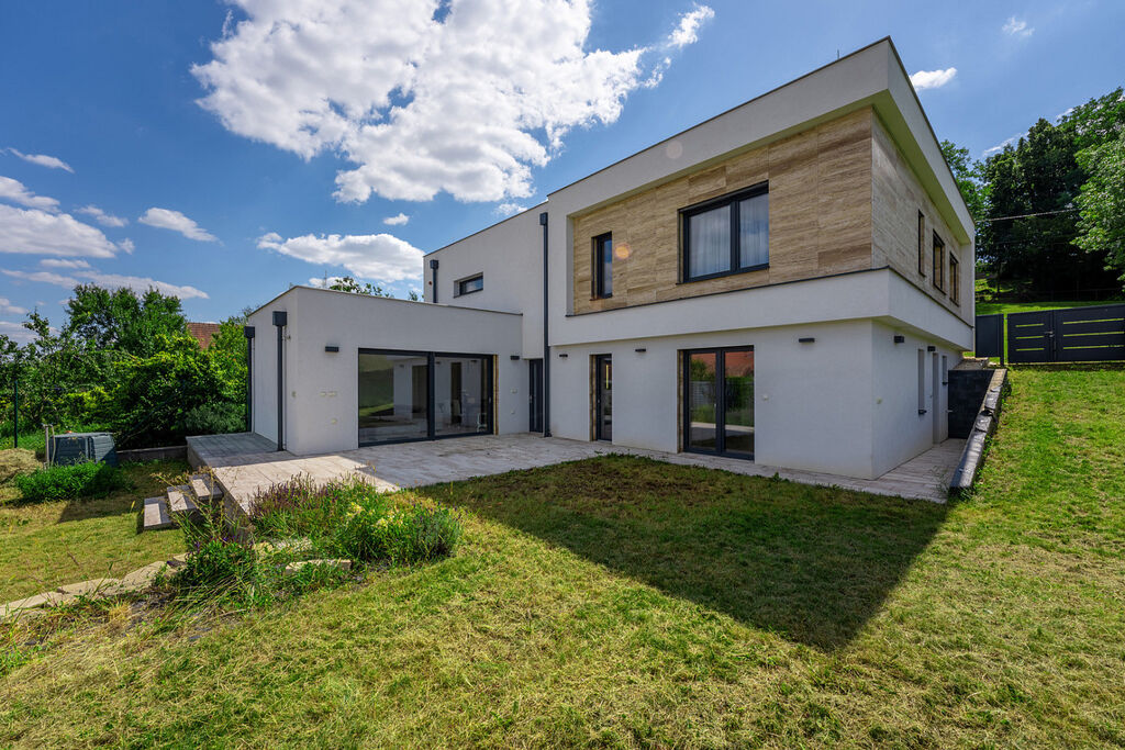 Hledáte luxusní bydlení s důrazem na detail a nadčasový design? Pak je tato novostavba přesně pro Vás. Na první pohled Vás okouzlí její čisté linie, fasáda s přírodním travertinem a dostatek světla, které do interiéru propouštějí velkoformátová okna.