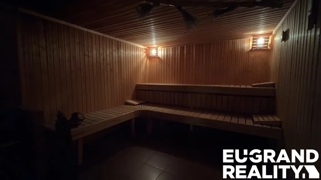 venkovní plavecký bazén 17 × 5,5 m (306 m², parc. č. 6988/4) – nová dlažba, rozsáhlá zahrada o výměře 2 432 m² (parc. č. 6988/1) s posezením, venkovním grilem a ohništěm, dětské hřiště, trampolína, stolní tenis, šipky, minigolf, půjčovna sportovních potřeb, sauna, masáže, fitness sál.