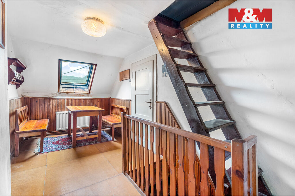 Hledáte rodinný dům na klidném místě s výbornou dostupností města i přírody? Máme pro vás dům v Ústí nad Labem – Vaňově, v ulici Vaňovská, s pozemkem o rozloze necelých 800 m². V přízemí se nachází větší obývací pokoj s krbovými kamny, kuchyně a koupelna se sprchou a toaletou. Do patra vás zavede dřevěné schodiště, kde jsou dva pokoje a chodba, z jednoho pokoje je pak vstup na balkon. Dům je udržovaný a připravený na úpravy dle představ nového majitele. Zahrada je členitá, se vzrostlými stromy, vybudovanými terasami a menšími stavbami – kolnou a kamenným sklepem, které rozšiřují možnosti využití. Lokalita je vyhledávaná pro svou blízkost k přírodním zajímavostem, v docházkové vzdálenosti najdete Vaňovský vodopád, vyhlídku Vrkoč či Labskou cyklostezku. Přitom jste během pár minut v centru Ústí a napojení na dálnici D8 vám zaručí rychlé spojení do Prahy i Německa. Pokud hledáte s ohledem na soukromí dům s pozemkem za cenu bytu, pak je tato nabídka přímo pro vás! A. Kopecká a M. Bálek