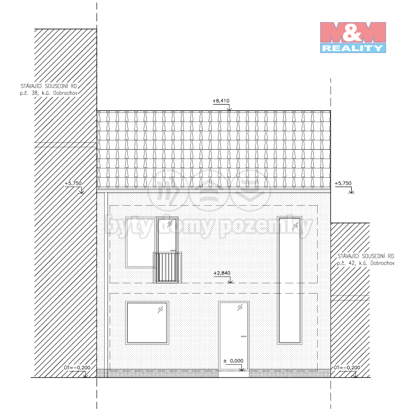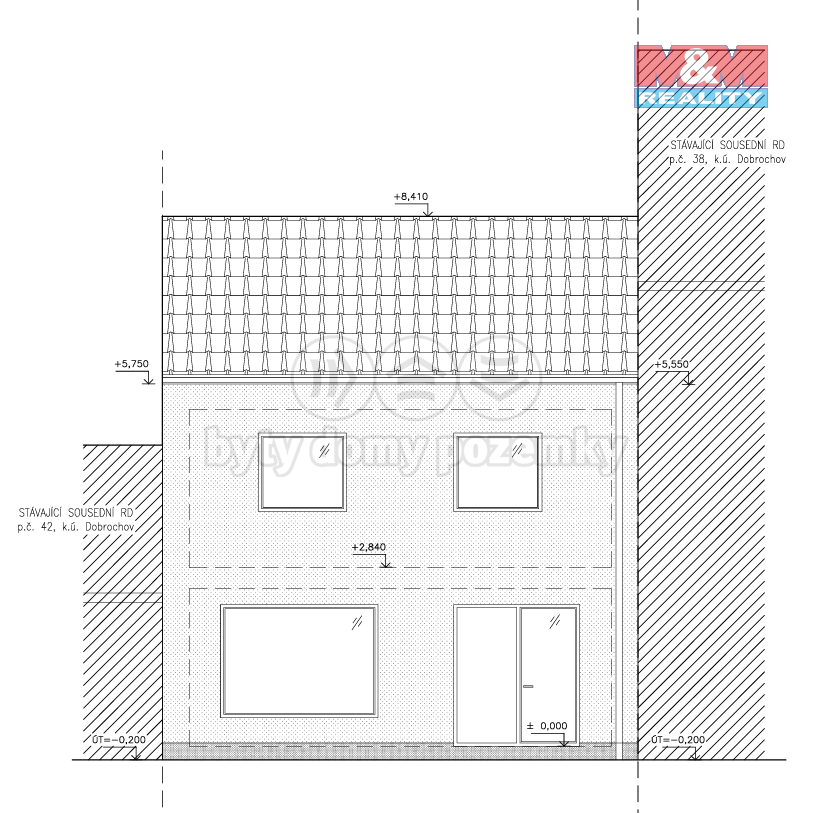 Součástí prodeje je projekt řadového rodinného domu o dispozici 5+kk a vydané, stále platné stavební povolení, což umožňuje okamžité zahájení výstavby.