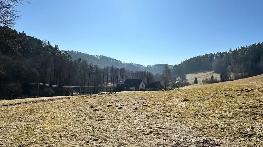 Pozemek se nachází v krásném přírodním prostředí, obklopený loukami a lesy, což zajišťuje klid a nádherný výhled do širokého okolí.