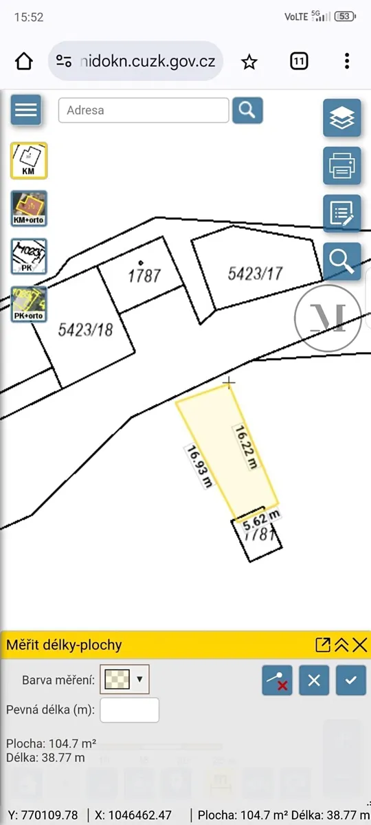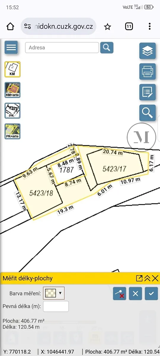 - Pozemky: vlastní pozemky pod stavbami (82 + 25 m²) + pronajatý pozemek cca 400 m²