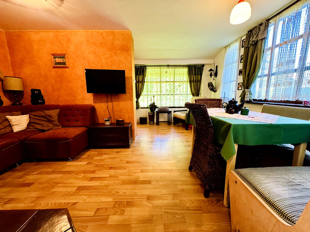 3+kk s jídelním koutem, prostorná terasa a koupelna se sprchovým koutem a WC.