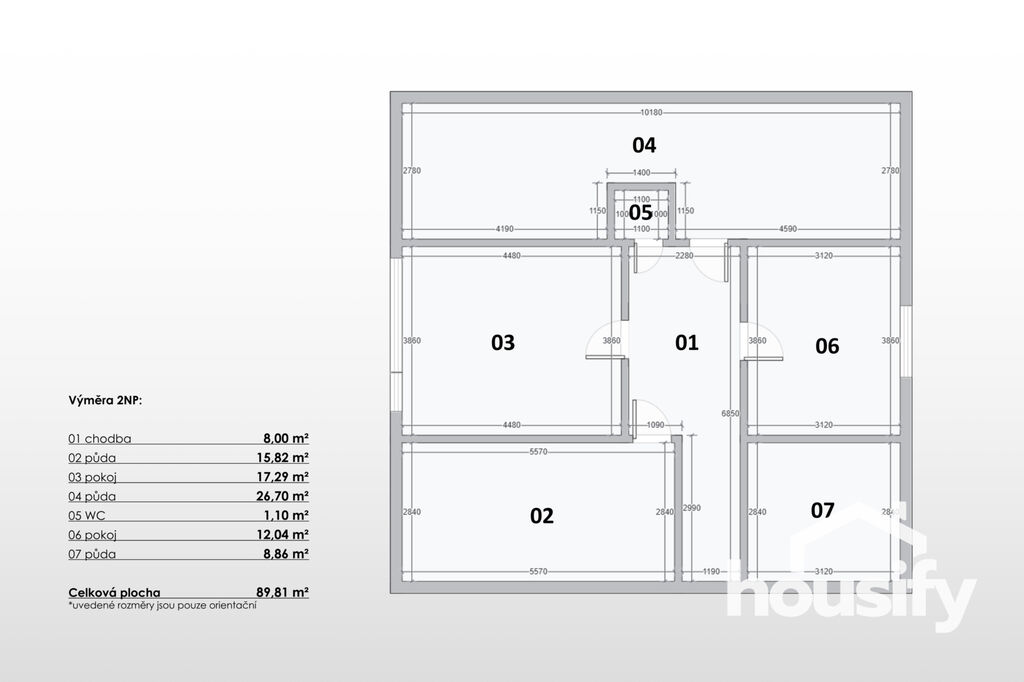 Přízemí domu zahrnuje prostornou halu, dva pokoje, obývací pokoj, samostatnou prostornou kuchyni se vstupem na terasu, koupelnu s rohovou vanou a samostatnou toaletu. Z haly se schodištěm dostanete do prvního patra, kde najdete další dva pokoje, toaletu a vstup do dvou půdních prostor.