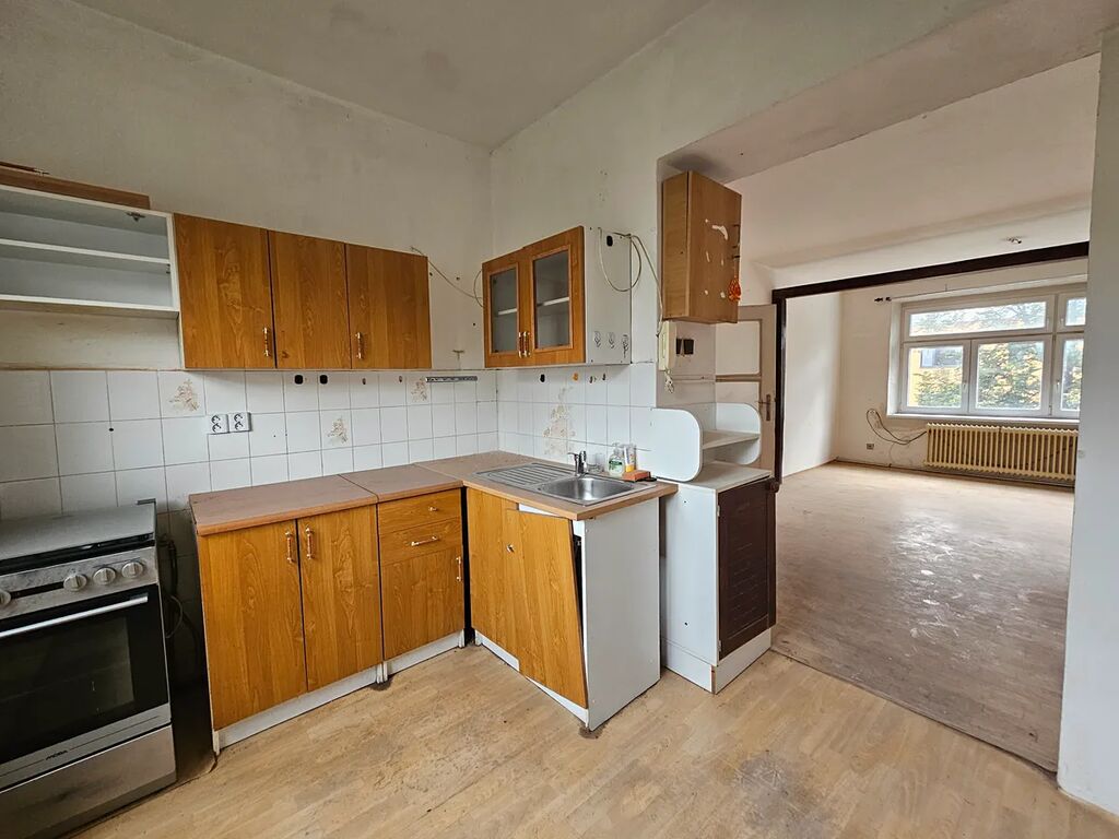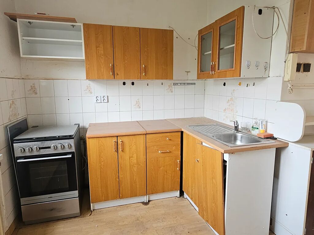 Jednotka sestává ze dvou pokojů, kuchyně, spíže, předsíně a koupelny s WC. Kuchyň je vybavena kuchyňskou linkou a sporákem. Koupelna a WC mají zděné bytové jádro. V koupelně se nachází vana, umyvadlo a WC kombi. Veškeré vybavení bytu je za hranicí životnosti, byt je určen k rekonstrukci. K bytu náleží sklepní kóje, která je umístěna v 1. PP.