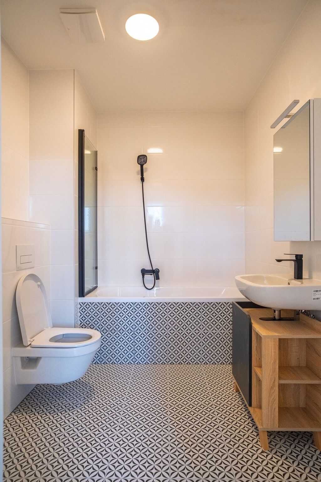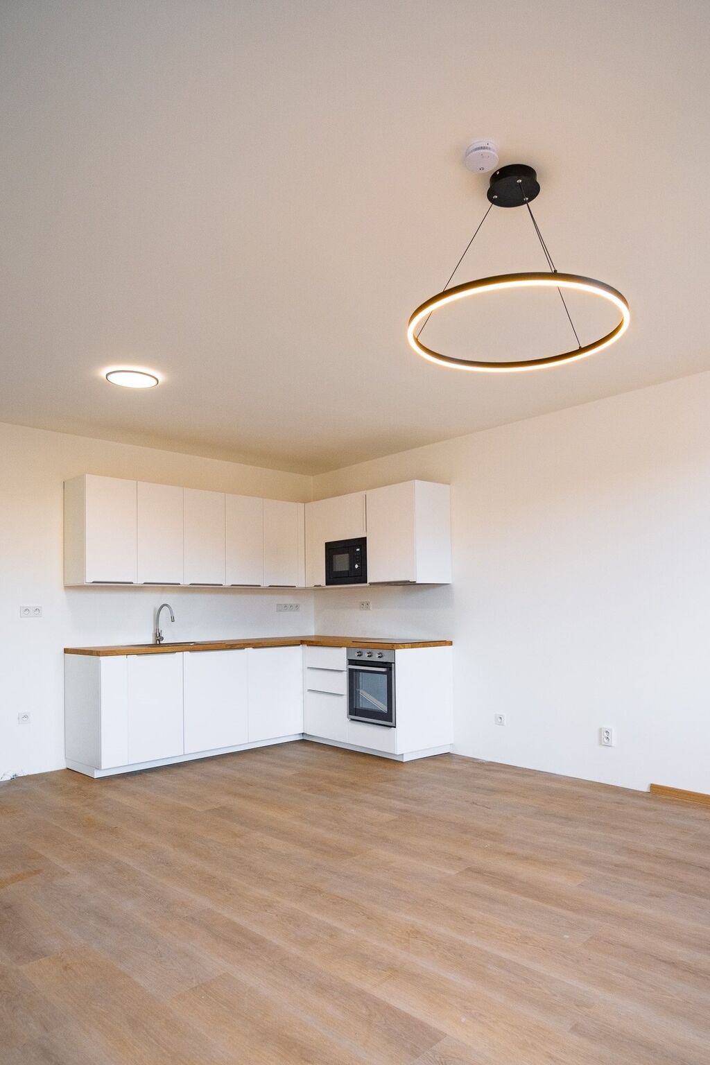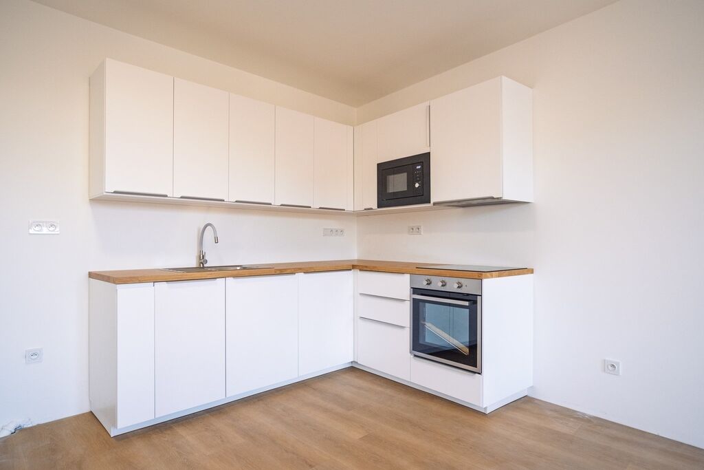 Dispozičně prostor tvoří prostorné zádveří, koupelna s vanou, sprchovou zástěnou a WC a hlavní obytná místnost orientovaná do klidného vnitrobloku. Na obývací část navazuje jídelní kout s novou kuchyňskou linkou a vestavěnými spotřebiči, mezi nimiž nechybí indukční varná deska, elektrická trouba ani mikrovlnná trouba.