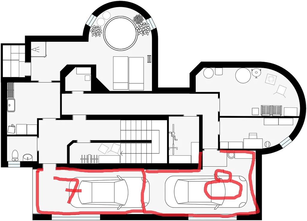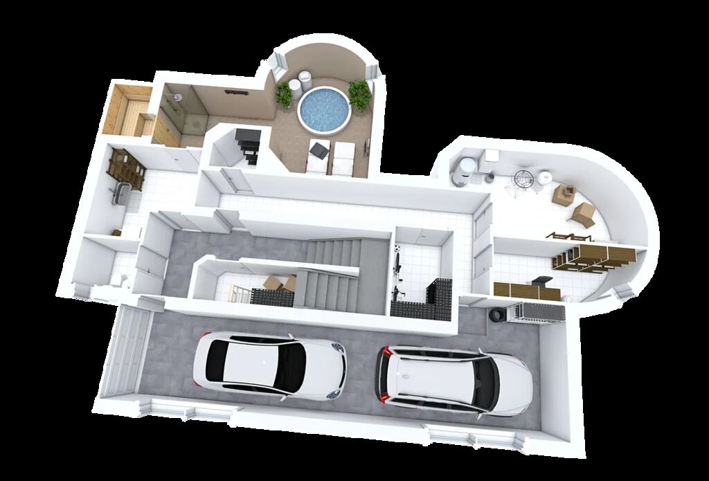 V suterénu se nachází prostorná garáž pro více vozidel a sauna s relaxačním zázemím a přípravou na bazének (lze využít i jinak).