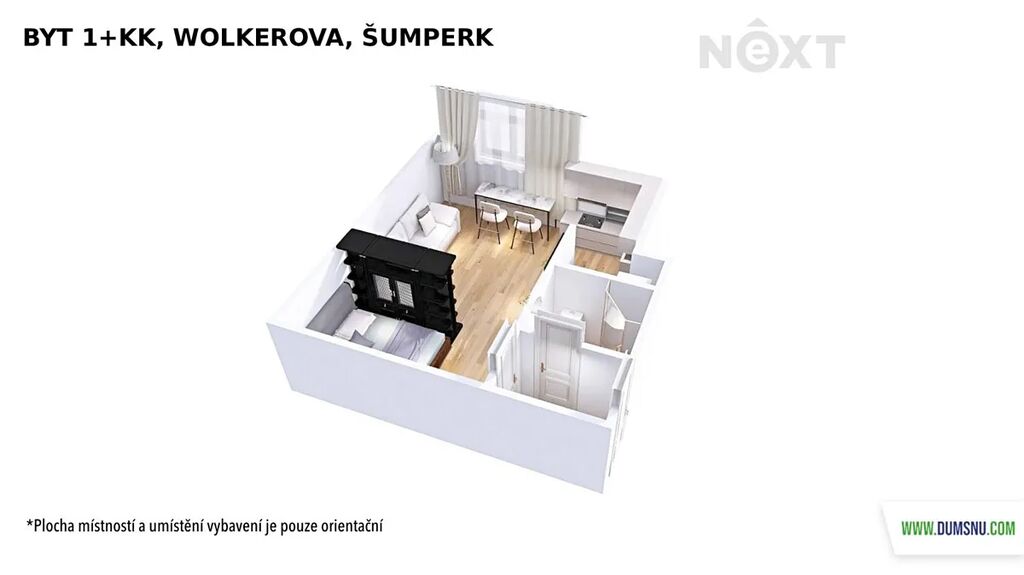 Byt je ihned k dispozici. Lokalita Wolkerova nabízí výbornou dostupnost do centra města i na vlakové a autobusové nádraží. Šumperk je atraktivní město s výbornou občanskou vybaveností – školy, školky, zdravotnická zařízení, obchody i sportovní vyžití jsou v dosahu. Díky poloze na hlavních spojných trasách je skvěle dostupný i pro dojíždění do okolních měst a pracovních center.