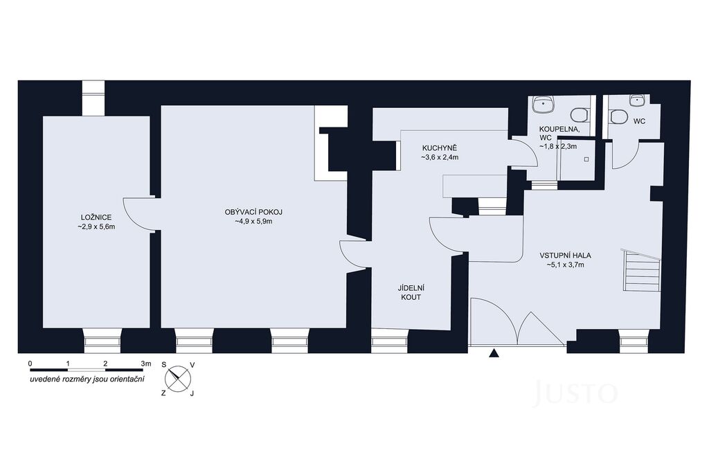 • v přízemí 3 místnosti s užitnou plochou cca 30 m²