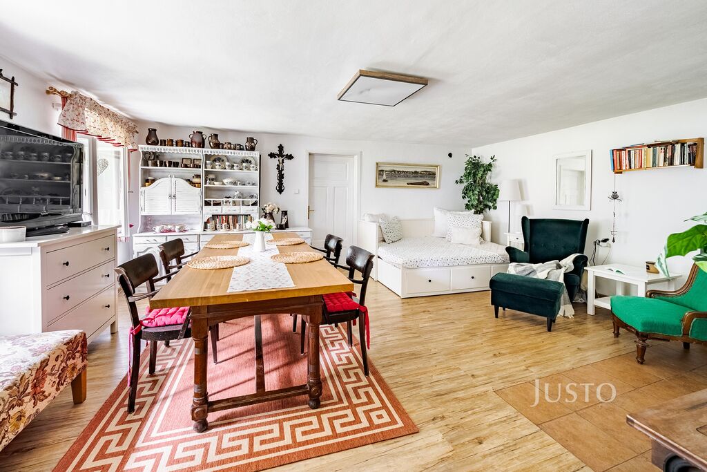 • užitná plocha v přízemí cca 82 m² (samostatné WC, koupelna s druhým WC, předsíň, jídelna, kuchyně, obývací pokoj a ložnice)