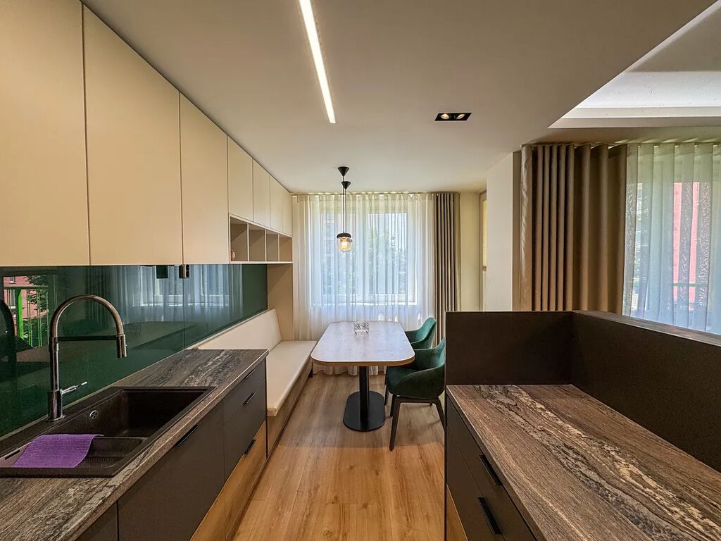 Interiér bytu byl vytvořen ve spolupráci s designovým studiem a byl navržen s maximálním důrazem na kvalitu, funkčnost i estetiku.